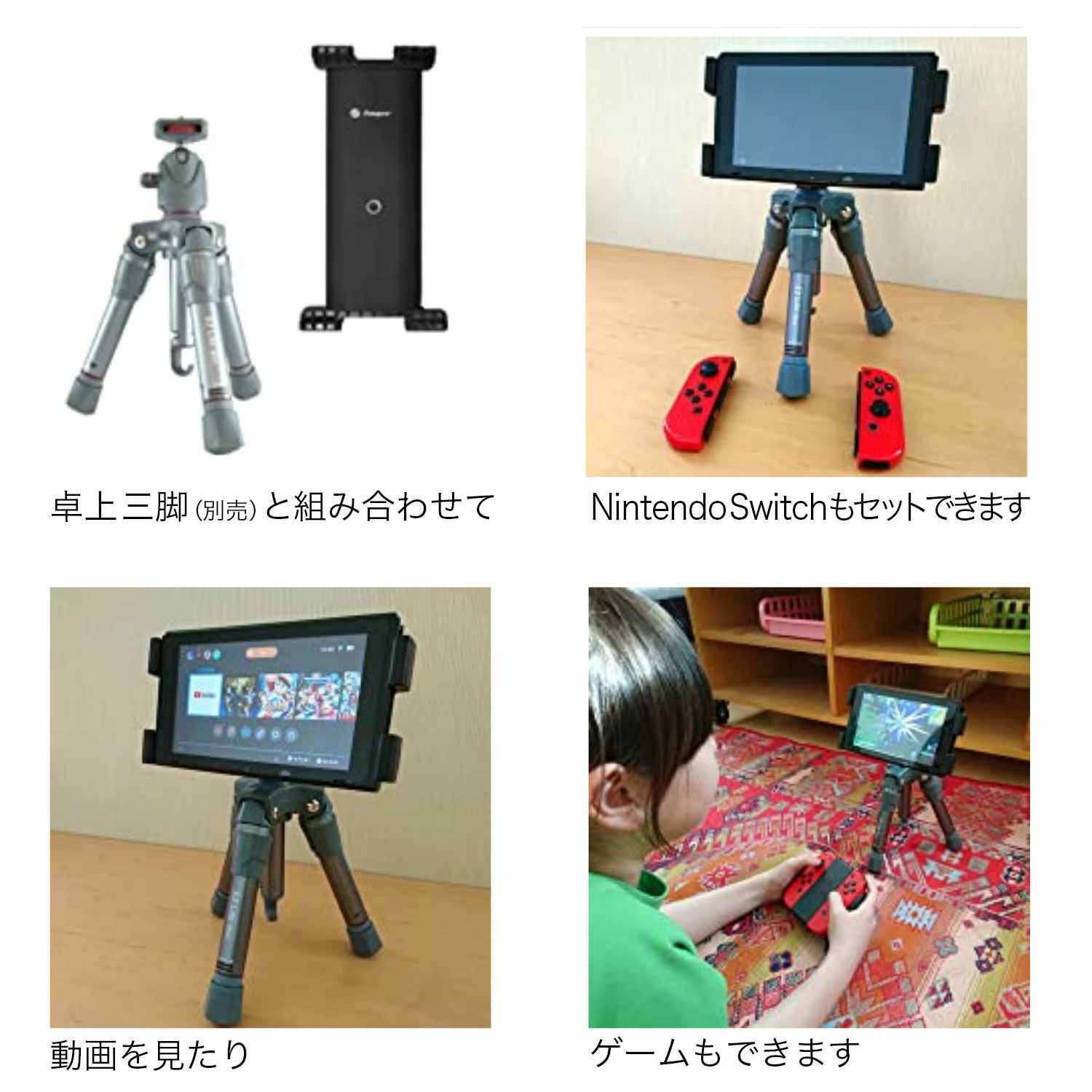 「ID-200+」は、タブレット端末で三脚を使った写真・動画撮影を可能にする、タブレットホルダーです。 シンプルな設計、スプリング式で簡単に取付けができます。挟み込むことで 簡単かつ本格的な写真・動画撮影が可能です。 動画鑑賞や料理中のレシピ確認等にもおすすめです。17cm~24cm以内のタブレットに対応可能。