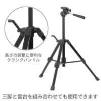 パン(水平)ティルト(上下)操作・カメラの傾き具合(横~縦位置)が調整可能な3way雲台を搭載