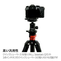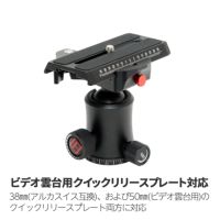 軽量コンパクトで汎用性の高い自由雲台です。38㎜(アルカスイス互換)、および50㎜(ビデオ雲台用)のクイックリリースプレートに対応。
