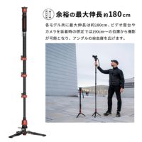 ビデオ雲台やカメラを装着時の想定では最大190cm~の位置から撮影が可能となり、アングルの自由度を広げます。