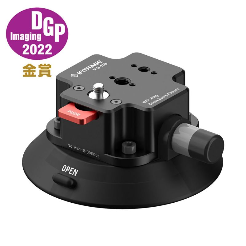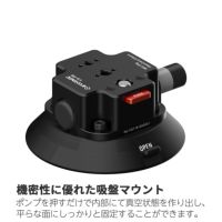 VS-118は、機密性に優れた吸盤マウントです。固定したい位置(平らな面)に吸盤を配置し、ポンプボタンを戻らなくなるまで繰り返し押すことで、内部にて真空状態を作り出し、しっかりと固定することができます。変換ネジはワンタッチで取り出すことができ、1/4インチネジ・3/8インチネジの変換が簡単に行えます。