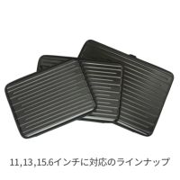 シェル部分にポリカーボネートを使用したセミハードケースです。ケース内部には、収納物をキズ付けにくい起毛生地を使用。持ち手付きなのでインナーケースとしてだけでなく、キャリングケースとしてもご使用いただけます。 13インチのノートパソコンに対応しています。
