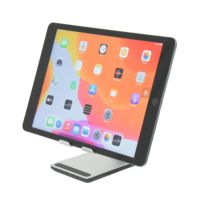 持ち運びにも便利な折りたたみタイプのスタンドです。端末との接触部分には、ゴム素材を使用しており、操作中の機材のズレを防ぎます。