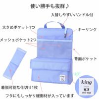 「happy osanpo camera」をモットーにオシャレで機能的なカメラグッズを販売している"ミーナ"とKingのコラボ商品です。普段使いのリュックに入れることでカメラリュックとして使用することができます。背面ポケットにはタブレットやA4ノートが収納可能なほか、多機能ポケットや鍵用フックなど便利な収納を備えています。