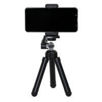 脚が三段階に伸びる超小型三脚。スマートフォンホルダー付属。