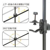 直径が3.2㎝以内のポールに取り付けることができ、高さ、長さを調整することで真上からの撮影ができます。料理、工作、ゲーム、テレワーク、ライブ配信等様々な撮影に活用いただけます。