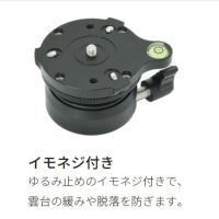 お手持ちの三脚にレベリングベースを取り付けることで、水平出しが簡単になります。ゆるみ止めのイモネジ付きで、雲台の緩みや脱落を防ぎます。