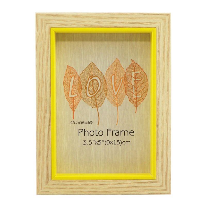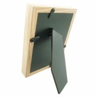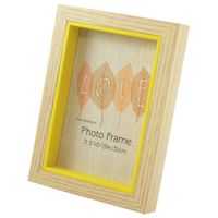 ナチュラルな木目にパステルカラーのワンポイント、パステルカラーのラインと奥行きで写真が際立ちます。