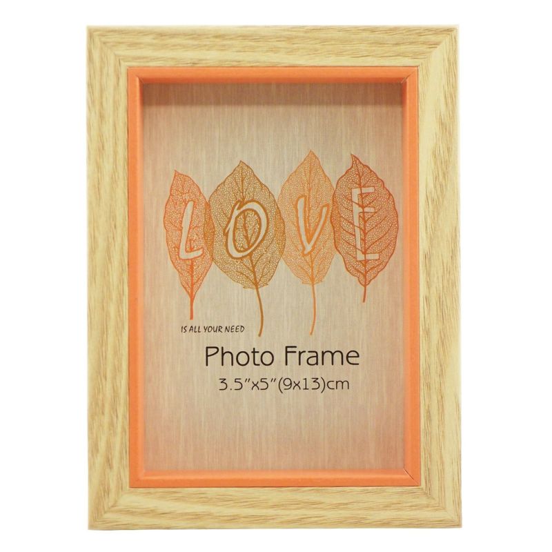 ナチュラルな木目にパステルカラーのワンポイント、パステルカラーのラインと奥行きで写真が際立ちます。