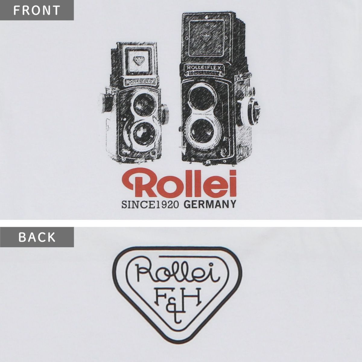 他の画像を見る Rollei さらさら着心地Tシャツ ROLLEIFLEX+ロゴ ホワイト M ROLLEIFLEXデザインのTシャツ 販売価格 ¥ 3,850 税込 カートに入れる お気に入りに登録する