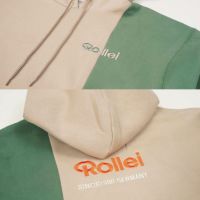 縦にカラーを切り替えたデザインと、胸元と背中のRolleiロゴの刺繍がポイントのパーカー。ゆったりとしたシルエットで、裏地は肌触りが良い起毛仕立てです。