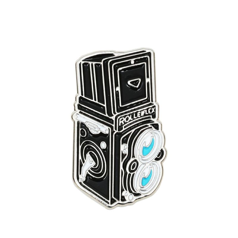 名機ROLLEIFLEXをモチーフにした、高級感あふれるデザインのピンバッジです。裏面にも「ROLLEI」の刻印入り。バッグやカメラストラップにつけて目印にも。
