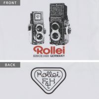 Rolleiの2眼レフカメラ“ROLLEIFLEX”モチーフのグラフィックがプリントされています。
