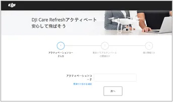 対象の製品を使い始めると同時にDJI Care Refresh 登録を行ってください