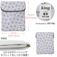 「happy osanpo camera」をモットーにオシャレで機能的なカメラグッズを販売している"ミーナ"とKingのコラボ商品です。ふわふわのクッション材がタブレットを守ります。表地のコットンはビニールコーティング加工されており、水濡れや汚れに強い仕立てです。