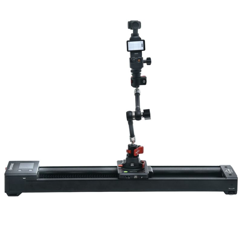 カメラやスマートフォンを取り付けて、水平移動と360°パンの動きを取り入れた映像を撮影できます