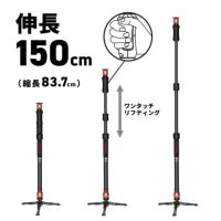 グリップ部の操作だけで伸長を調整することができ、素早くセットアップを完了することができます