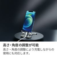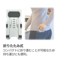 持ち運びにも便利な折りたたみタイプのスタンドです。端末との接触部分には、ゴム素材を使用しており、操作中の機材のズレを防ぎます。