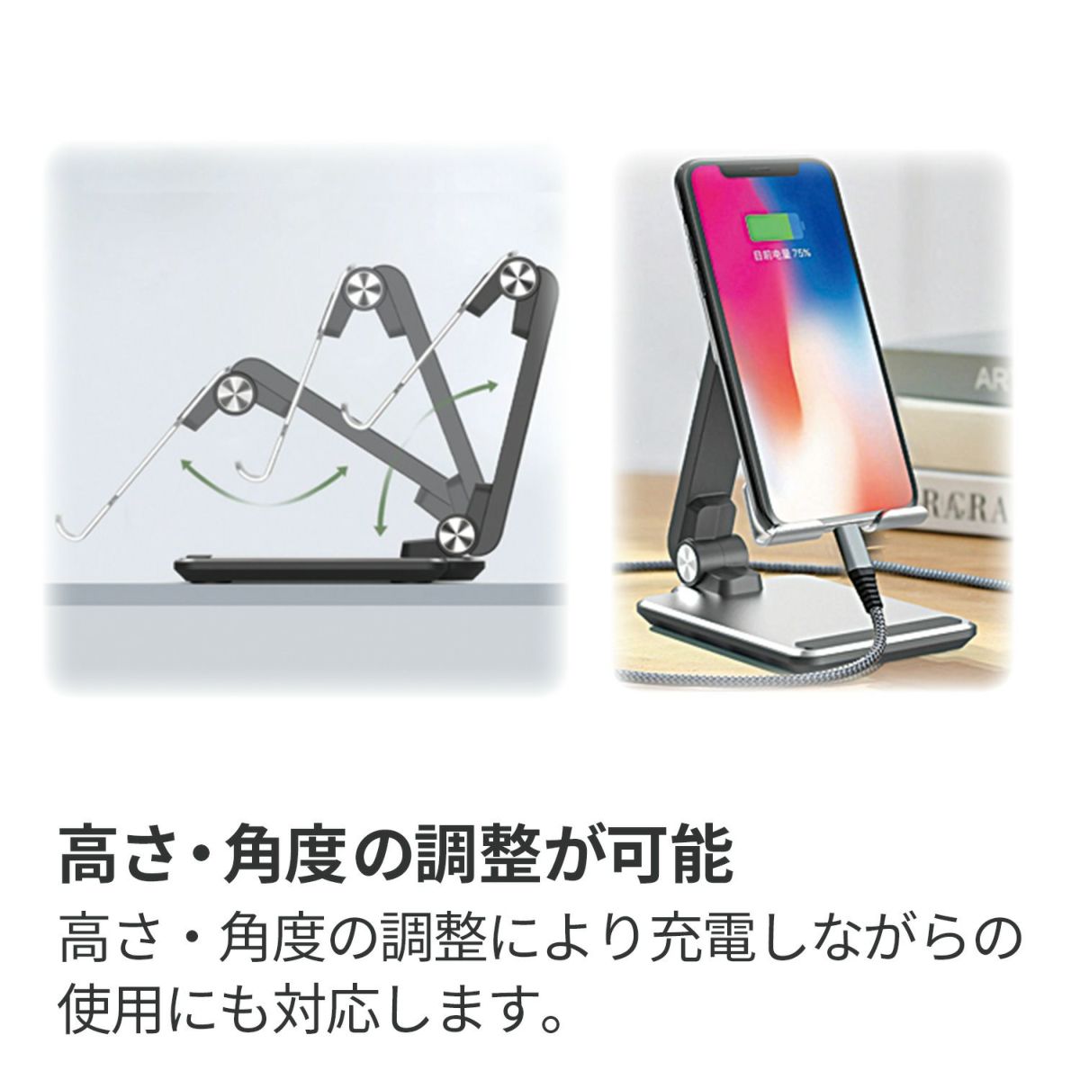 タブレット、スマートフォン対応の折り畳み式スタンド
