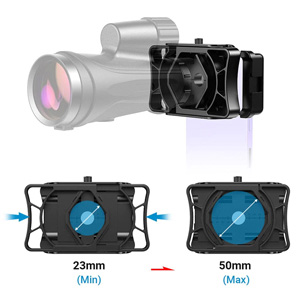 直径23〜50mmのほぼすべての接眼レンズに適合し、幅66~95mmのスマートフォンが装着できます。