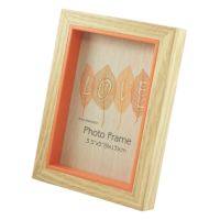 ナチュラルな木目にパステルカラーのワンポイント、パステルカラーのラインと奥行きで写真が際立ちます。