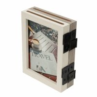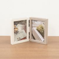 フレーム上部のスリットへ写真を挟んだ前面板を差し込むようにして収納します