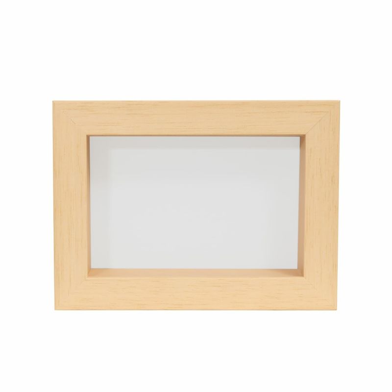 King BOXフレーム は、ボックスタイプの外枠を採用したフォトフレームです。フレームに奥行きがあることで写真に立体感を与え、視覚的に引き立てることができます。前面のアクリル板はUVカット加工が施されており、大切な作品を色褪せから守ります。また、奥行きを活かしてレリーフ(半立体)作品や小物類の展示など、様々な用途にもお使いいただけます。