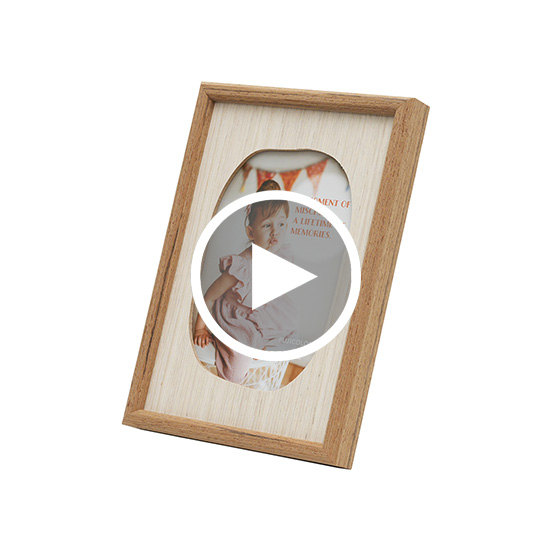 FUJICOLOR ウッディフレームMellowは、温かみのある木製マットを採用、四角や楕円ではない、遊び心溢れる窓枠デザインが印象的な木製フレームです。吊金具付きで壁掛けにも対応