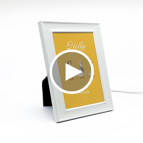 FUJICOLOR メタルカラーフレームは、シンプルなデザインが写真を引き立てるフォトフレームです。ネクタイ型のスタンドが付いており、飾る時の角度の調整ができます。
