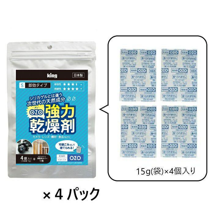 他の画像を見る King 強力乾燥剤 OZO-S30 大容量パック(30g×6袋入) 送料無料 シリカゲルとは違う次世代の乾燥剤(即効タイプ)大容量パック 販売価格 ¥ 2,640 税込 カートに入れる お気に入りに登録する