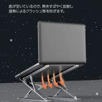 滑り止めパッド付きで安定性抜群です。ノートパソコンがあたる箇所にもシリコンパッド付きのため、機材が傷つきません。