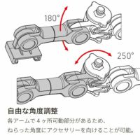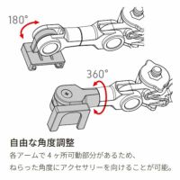 K-ACCA-75は、撮影の負担になりにくい軽量な樹脂製アクセサリーアーム です。各アームで4ヶ所可動部分があるため、ねらった角度にアクセサリーを向けられます。