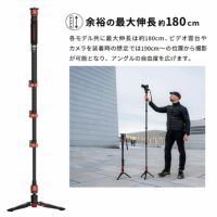 ビデオ雲台やカメラを装着時の想定では最大190cm~の位置から撮影が可能となり、アングルの自由度を広げます。