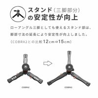 ローアングル三脚としても使えるスタンド部は、脚部寸法の延長により安定性が向上しました。(COBRA2との比較12cm⇒15cm)