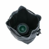 King K-KCP-Mは、開口部が大きく開きカメラを出し入れしやすい巾着型のカメラポーチです。裏地はやわらかいフランネル素材を使用。標準レンズを装着したミラーレスカメラが収納可能な大きさです。