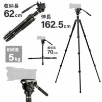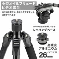扱いやすいビデオ雲台と水平の調整が簡単にできるレベリングベースが付属する軽量アルミ三脚のセットです