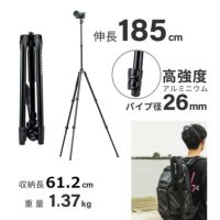 本体は重量1.28kgとなり、持ち運びやすい重量です。(雲台を含めた重量は1.37kg)