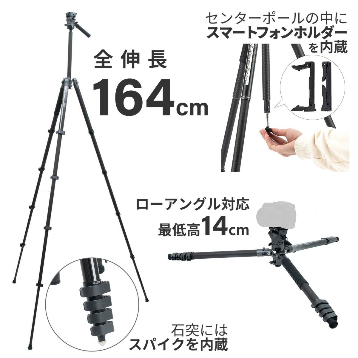 他の画像を見る Fotopro X-AIRCROSS 3C Lite カーボン三脚 スマホ カーボン 5段 超軽量・コンパクト設計のカーボン三脚 伸長151.2cm / 縮長40cm / 質量810g 販売価格 ¥ 35,640 税込 カートに入れる お気に入りに登録する