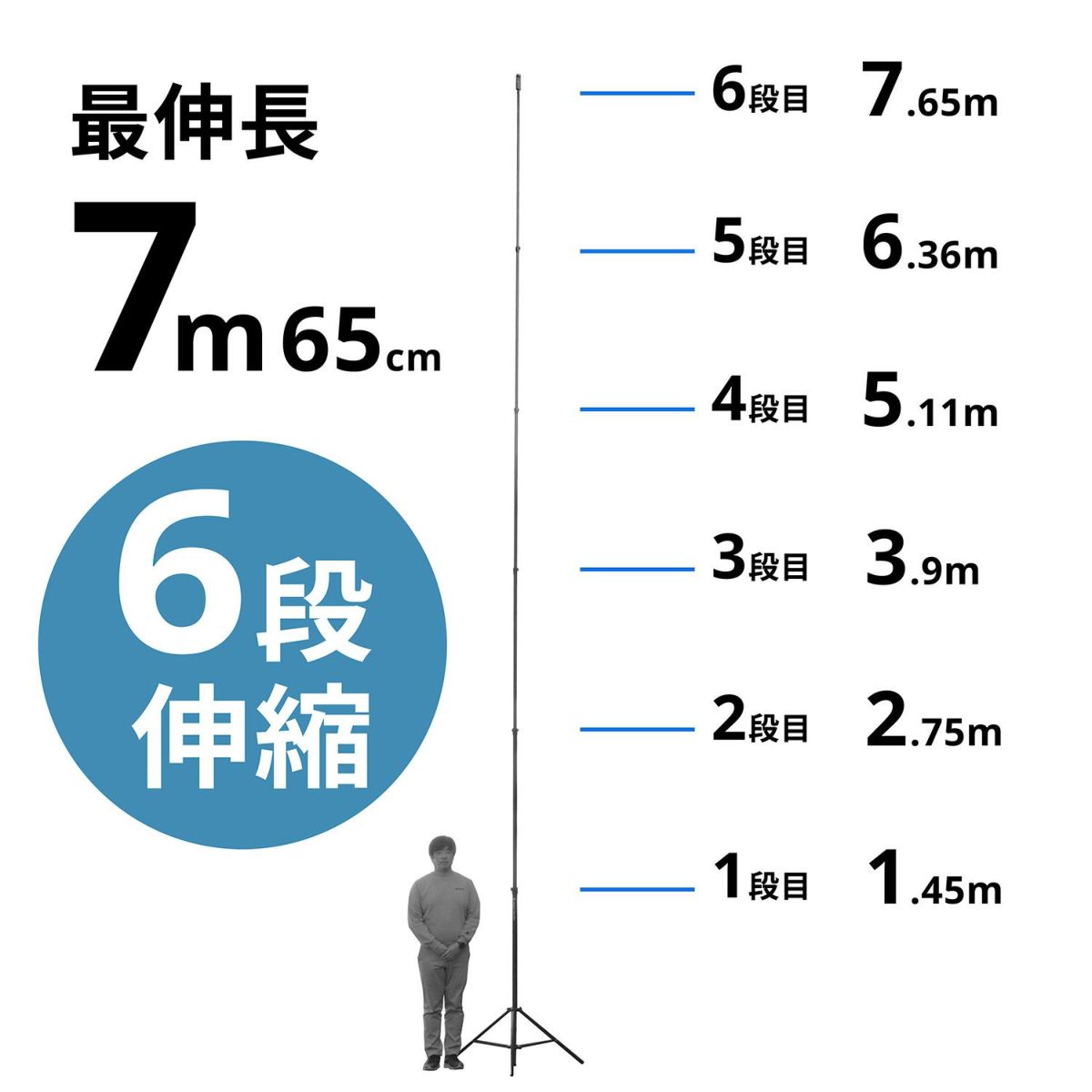 他の画像を見る Fotopro iSky Ultra 鳥瞰撮影ロングポール NEW カーボン 6段 7.65mの高さから撮影できる超ロングポール 伸長765cm / 縮長145cm / 質量3080g 販売価格 ¥ 137,500 税込 カートに入れる お気に入りに登録する