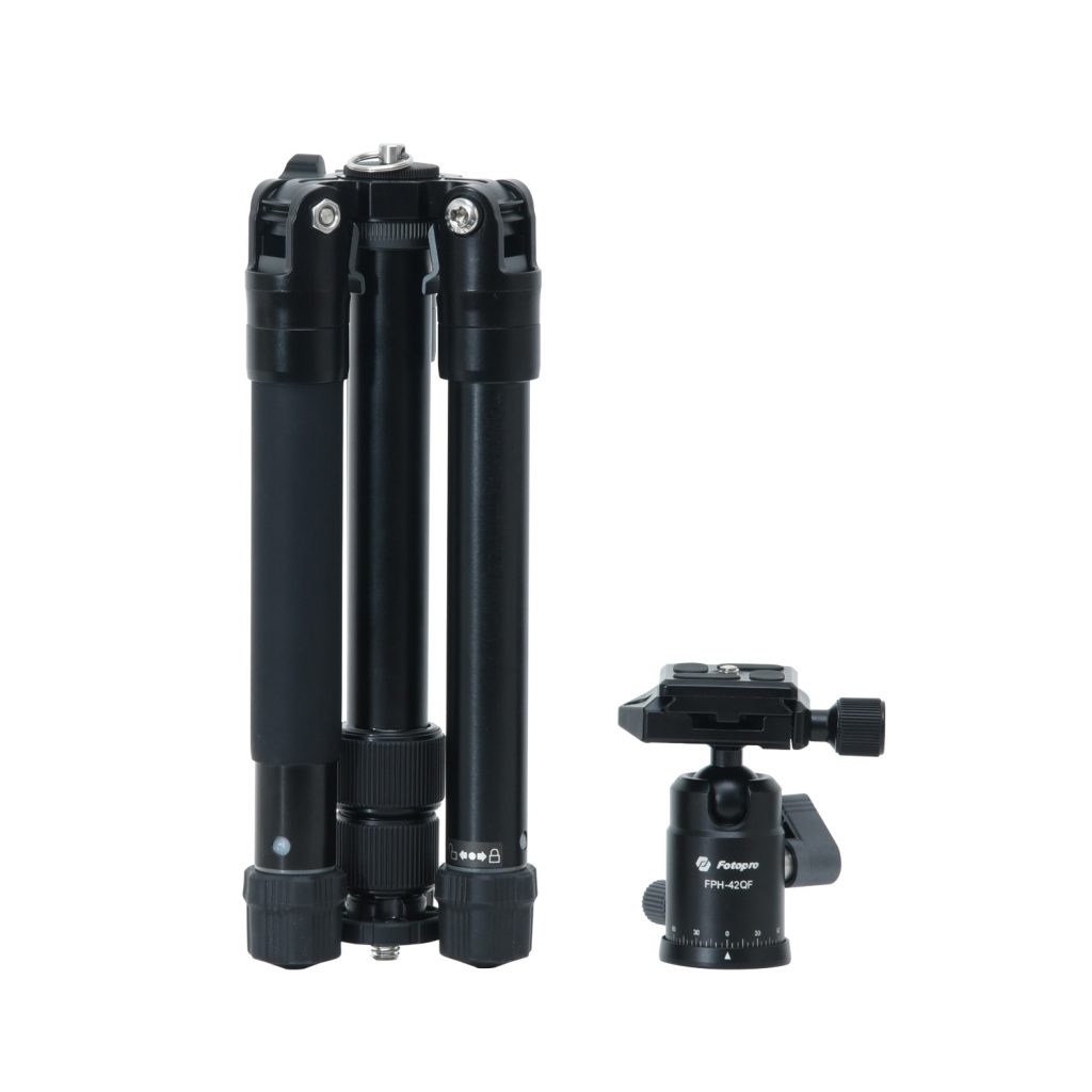 スリムな中型トラベル三脚と小型ビデオ雲台のセット