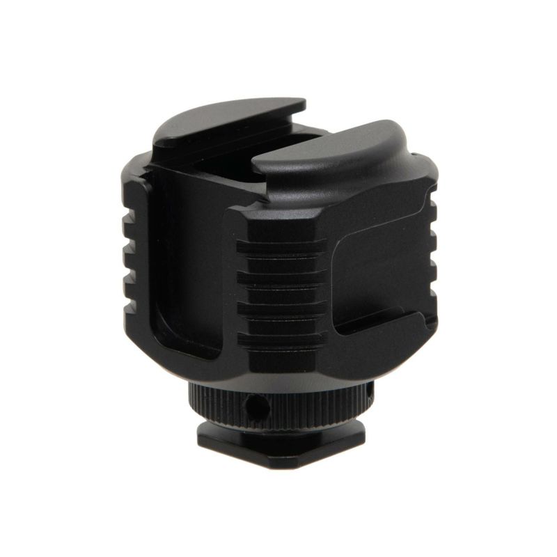 King MAC5は、カメラのホットシュー部やシューアクセサリー対応のケージ/リグに取り付けて、複数のコールドシューアクセサリーを取り付け可能とするアダプターです。主に動画の撮影などマイクやLEDライト、モニターといった様々なアクセサリーが必要とされる場面で、MAC5を介してアクセサリーを取り付けることで快適な撮影が行えます。