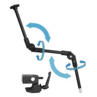 CA-3Sは、機材の取り付け自由度と柔軟な設置が特長の多機能アームです。2箇所の関節を調整することで、撮影、配信、動画視聴など、用途に合わせて最適なポジションに機材を設置できます。アームの両端に、1/4インチカメラネジとライト取付用ダボを備えており、多様な機材の取り付けが可能、クランプ部分は30mmまでの厚さのテーブルや、50mmまでのポールなどへの取り付けに対応しています。