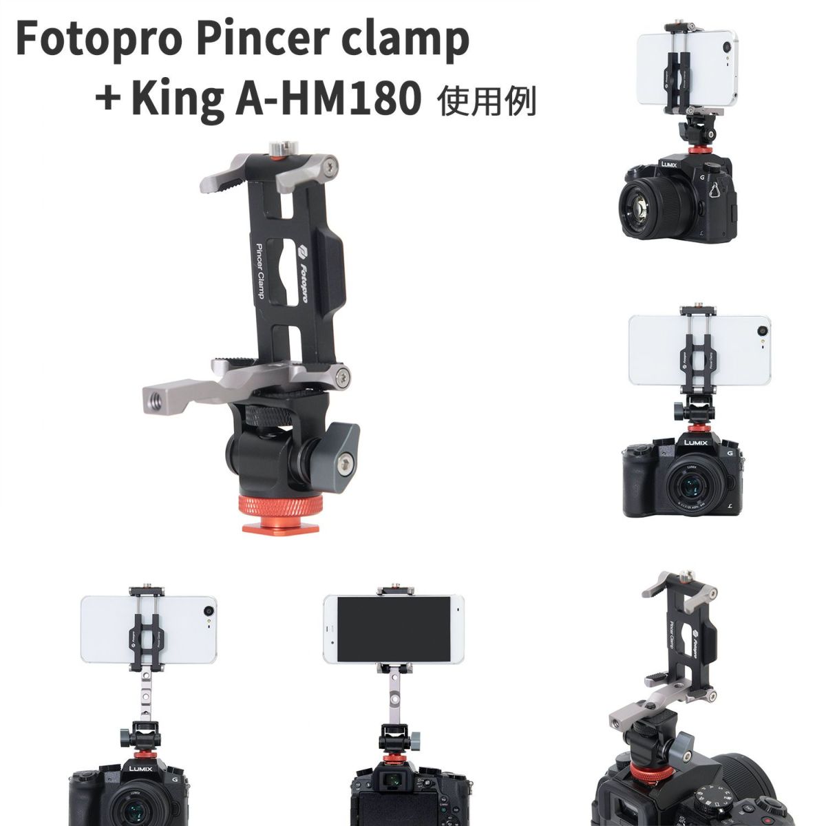 他の画像を見る Fotopro Pincer Clamp + King A-HM180 セット 当店限定 スマホ アルカ対応 ホットシュー部分への取り付けに対応したマウントアダプターとハイスペックなスマートフォンホルダーのセット 販売価格 ¥ 8,019 税込 カートに入れる お気に入りに登録する
