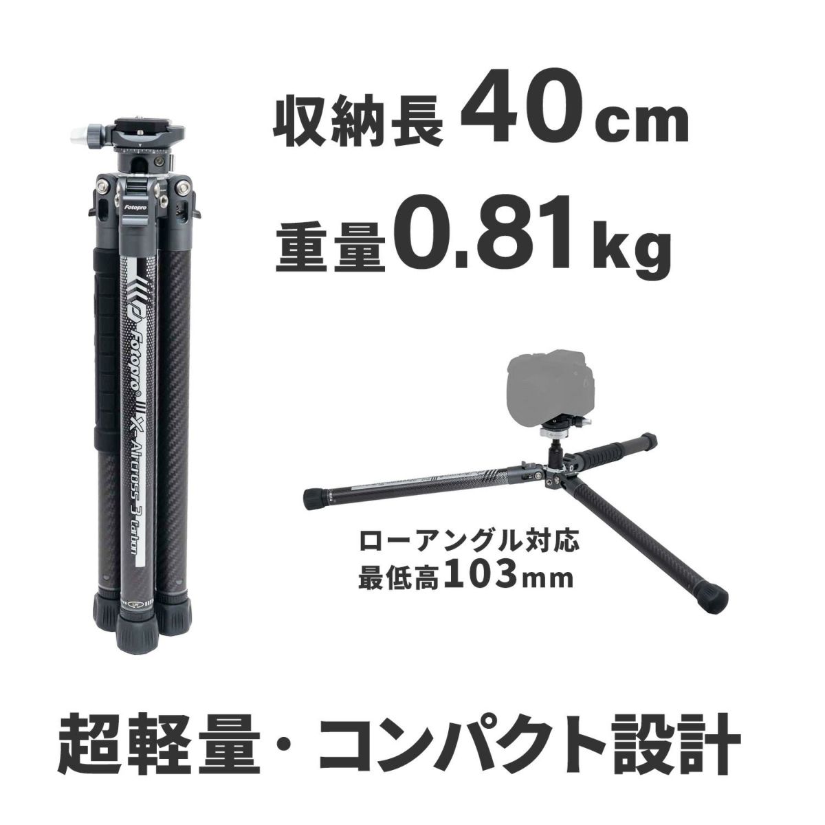 他の画像を見る カーボン 5段 Fotopro X-go E カーボン三脚 販売価格 ¥ 24,200 税込 多機能なカーボン三脚 伸長152cm / 縮長36cm / 質量980g カートに入れる お気に入りに登録する