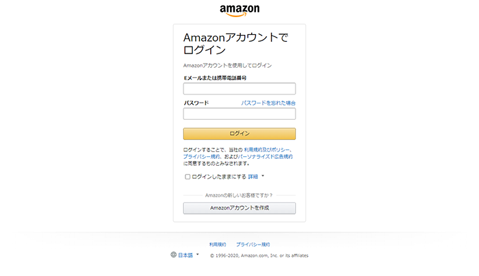 Amazonサインイン画面が表示されますので、Amazon.co.jpにご登録のアカウント情報でサインインしてください。
