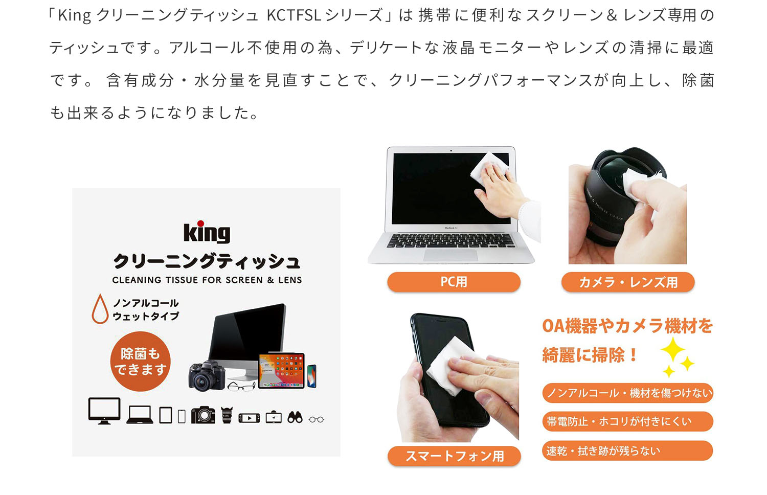 【King クリーニングティッシュ KCTFSL のご購入はこちら】