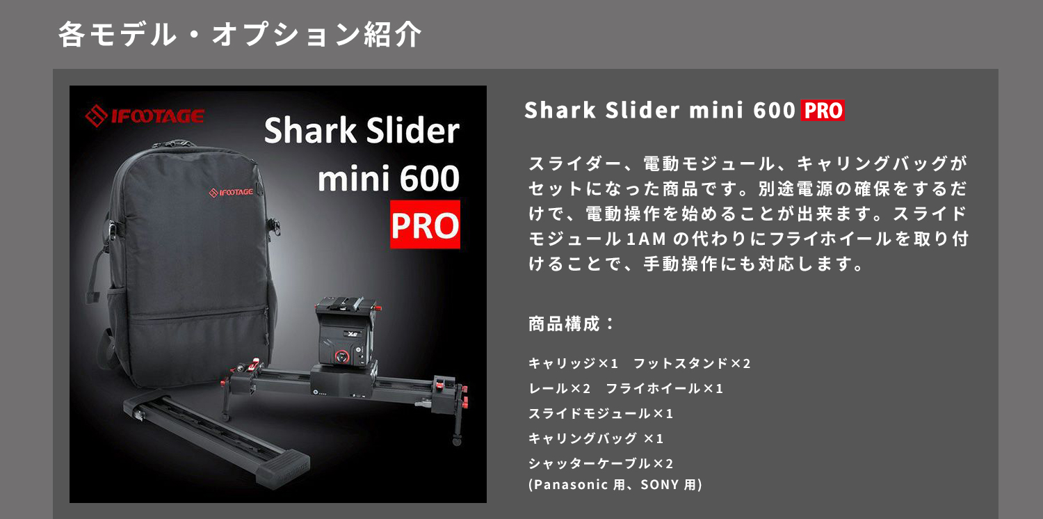 【IFOOTAGE Shark Slider miniシリーズ 各仕様のご確認・ご購入はこちら】