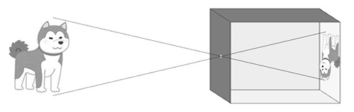 写真の起源とも言われているカメラです。完全に遮光された四角い箱の一面にある針の先で開けたような小さい穴が、被写体からの僅かな反射光を受け入れて反対側の面に像を形成するという光の現象(ピンホール現象)を利用した、一見単純でありながら奥深いものです。