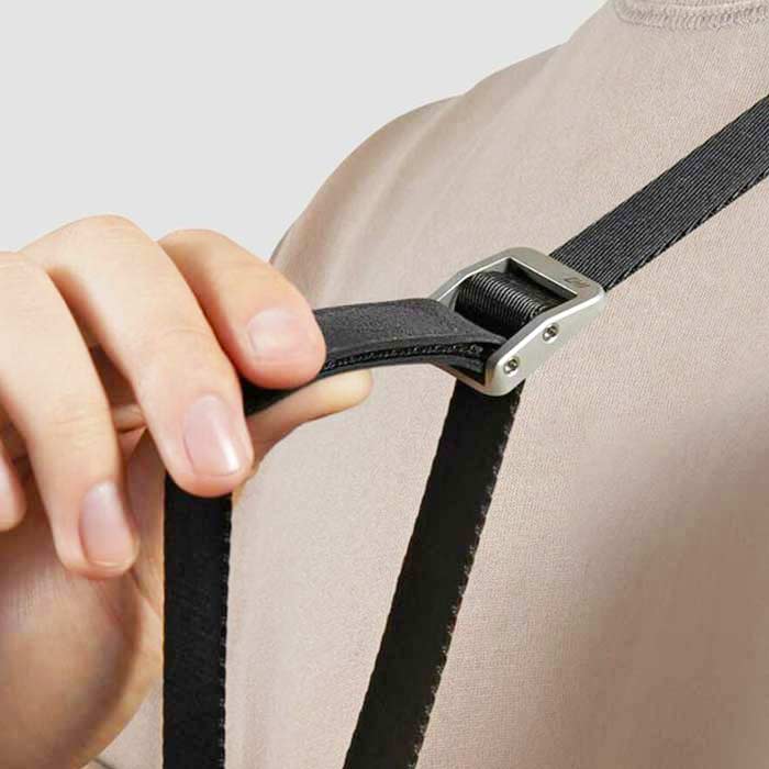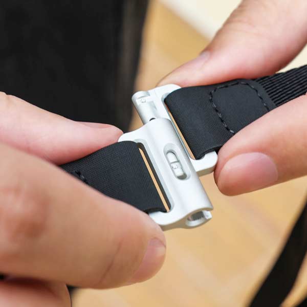 CHI Levoストラップは撮影時にすばやくカメラを構えられるように設計されており、クイックアジャスターを片手で操作してスムーズに長さを調整可能。また、マグネット式のクイックリリース機構(マグドット・アタッチメントシステム)を備えており、ワンタッチでカメラを着脱することができます。