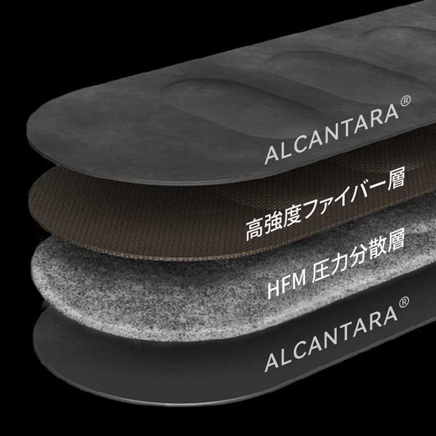 一部モデルのレザーパーツにイタリア製の高級素材「Alcantara®」を使用。フェラーリをはじめとする高級車の内装にも使われている上質な人工スエード生地で、優れた耐久性と心地よい手触りが特長です